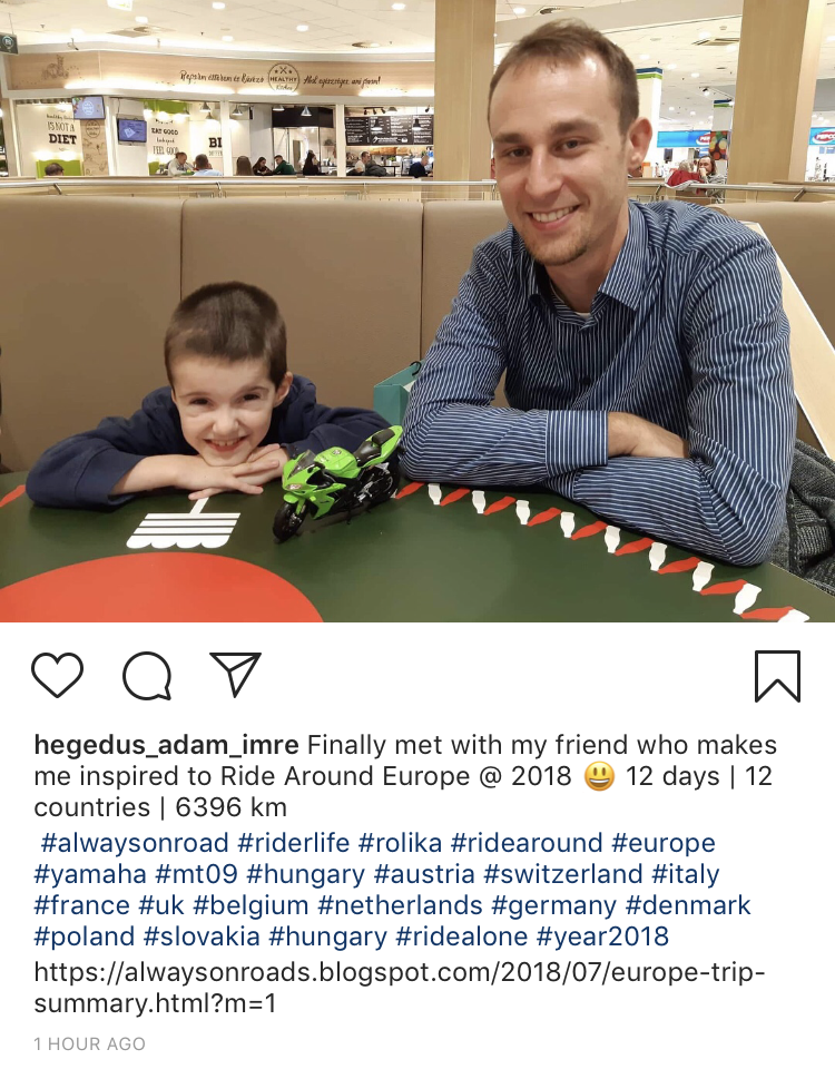 Two years ago I started an initiative for riders, that if we can have fun of riding, and also we can share it with others, let’s do it. As well, I attended some additional charity activity, so it was so obvious to ride for matter/charity. That’s why I offered my trip for healing of Erdélyi Rolika. He was born in November 2009 in Zalaegerszeg Hospital. He was only four months old when he had his first brain surgery. It turned out that this brain was covered with cysts, which could not be removed. At eighteen months of age, he had a lifesaver’s skull surgery, after which he received a cerebrovascular infection. Rolika had developed nicely in comparison with the circumstances, he had already attended in the Pooh’s kindergarten. But it turned out that it has myelodysplastic syndrome, which can only be cured by transplanting bone marrow stem cells. Now he is 8 years old, he learned to walk with equipment, and tell ferry tails by memory in a so kind manner. If he can achieve what he decided, there is no excuse to make my dream come true. He gave me passion to do it! 🙂