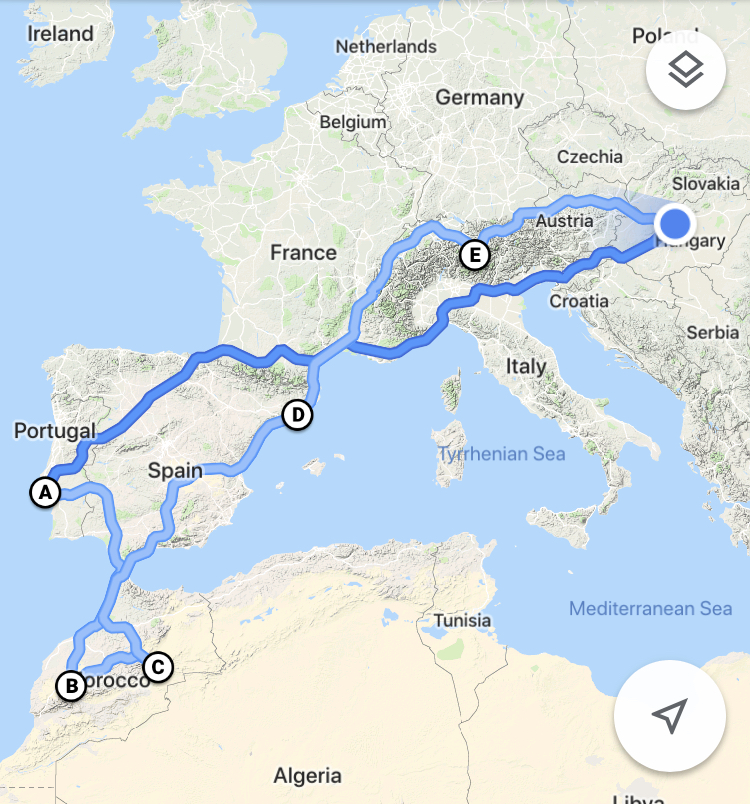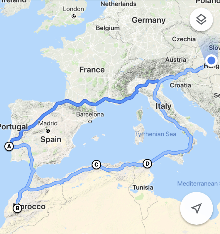 – Sunday: Innsbruck – Budapest (850 km – 12 hours)