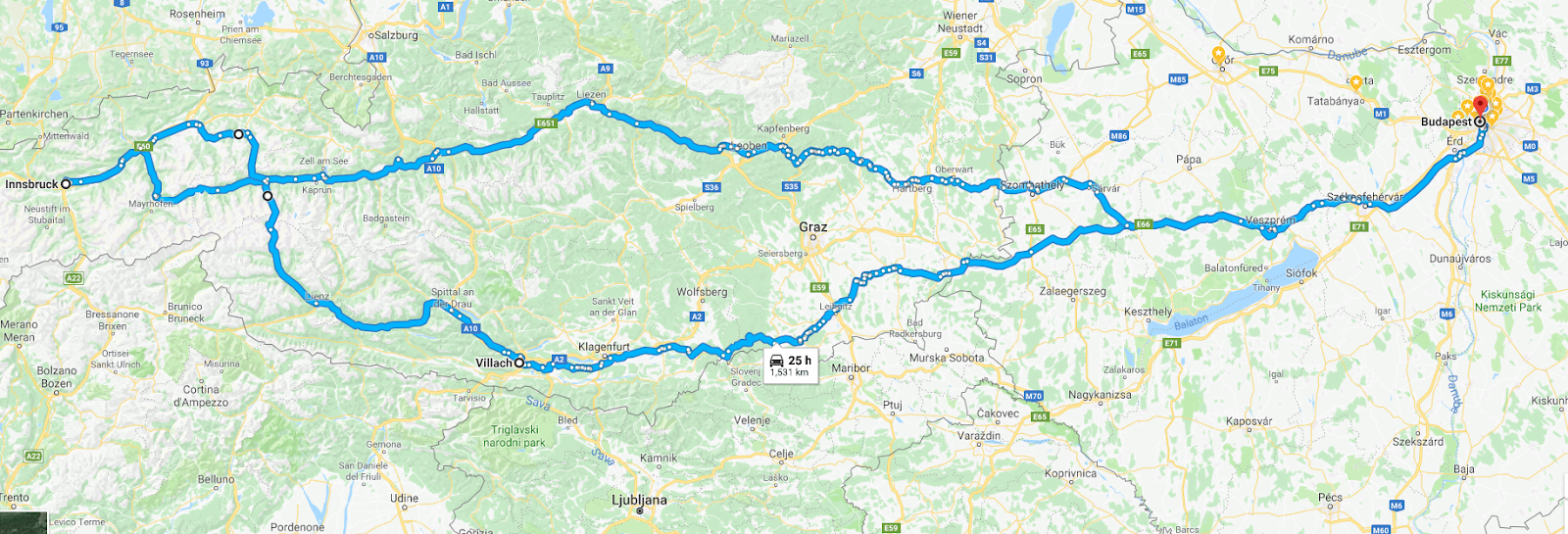 – Friday: Budapest – Villach (500 km – 8 hours)